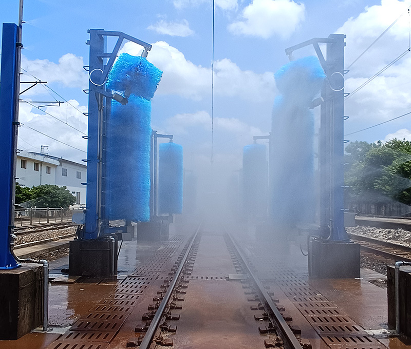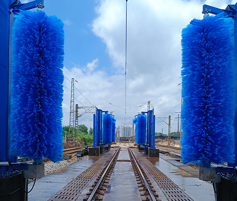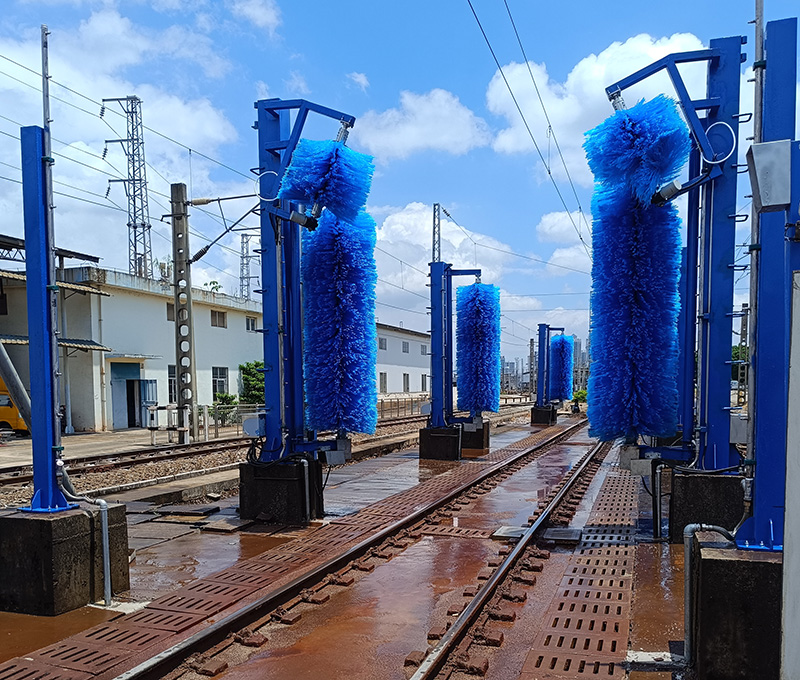 2、被清洗的污物主要是機(jī)車工作時(shí)累積和粘附在機(jī)車外皮表面的油泥、油垢、灰垢和動(dòng)物粘結(jié)物等,必須加裝洗車液計(jì)量泵噴灑洗車液,要求機(jī)車兩側(cè)面、兩個(gè)側(cè)頂弧面清洗干凈,