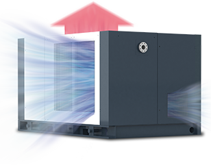 風冷機型采用離心風扇,直接從機組外部吸入較冷空氣的方式對冷卻器進行冷卻,并將熱空氣直接從機組頂部排出,冷卻器本身亦有極大的換熱面積,冷卻效果至佳。